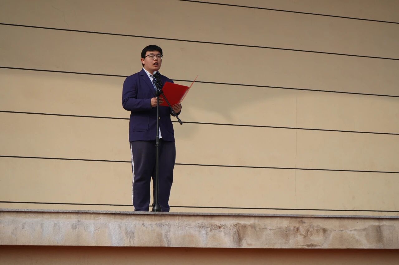 学生代表亢瑞征走上发言台,他围绕“文明习惯”核心分享感悟:文明并不遥远,就藏在真诚问候、自觉排队、整洁课桌,以及课堂专注眼神、走廊轻声脚步、食堂有序队伍里;习惯成于自然,需从当下小事做起,早读不迟到、上课认真听、值日不敷衍、作业独立完成,这些点滴终将助力成长。正值人生关键期,良好习惯关乎个人修养与未来发展,他倡议全体同学将“文明”刻进心里、落实到行动中,争做校园里最美的风景。