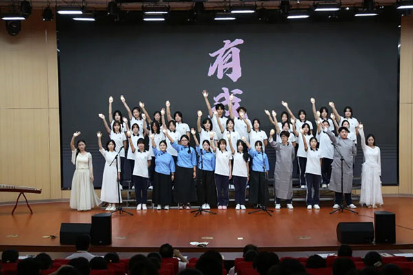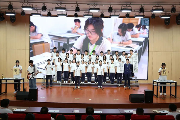 9月29日,大学校区综合楼报告厅内歌声嘹亮、气氛热烈,高二级部“薪火传信念,青春唱朝阳”合唱比赛在此圆满举行。全体师生齐聚一堂,以青春旋律传承爱国信念,用励志歌声唱响青春朝阳。学校各级领导到场担任比赛评委,共同感受学生的蓬勃朝气。