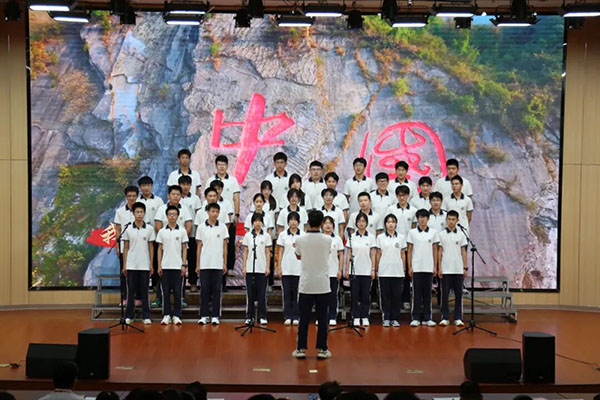 各班的表演设计构思精巧、各具特色,从创意编排到细节呈现都彰显着班级风采;现场互动更是频频出彩、亮点不断,每一次掌声与呼应,都生动诠释了班级的凝聚力与蓬勃的创造力。活动尾声,杏坛中学高二全体教师登台合唱《我和我的祖国》,歌声饱含深情、真挚动人,以最质朴的方式为祖国76周年华诞献上诚挚祝福。随后,姜宏志老师又以一首独唱《国家》接续这份家国情怀,将现场氛围推向高潮。
