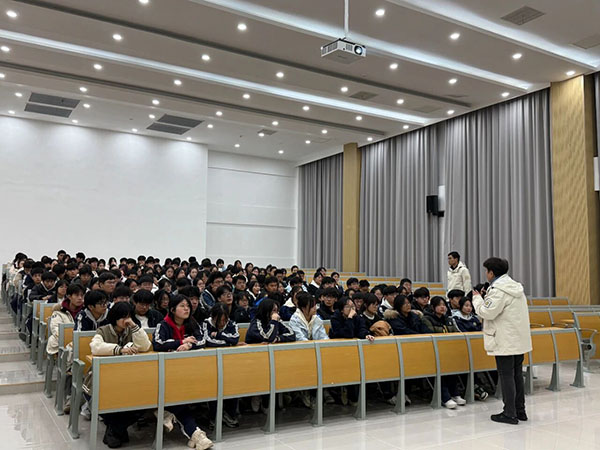 在讲座的实践环节,余老师带领大家体验了独特的正念解压法。随着灯光缓缓调暗,同学们端正坐姿,在余老师的引导下进入全身放松状态。伴随着轻柔的音乐,大家进行了一场"心灵漫游",让压力在意识的流动中自然消解。这个环节让同学们学会了在紧张备考中给自己一个宁静的休憩空间。