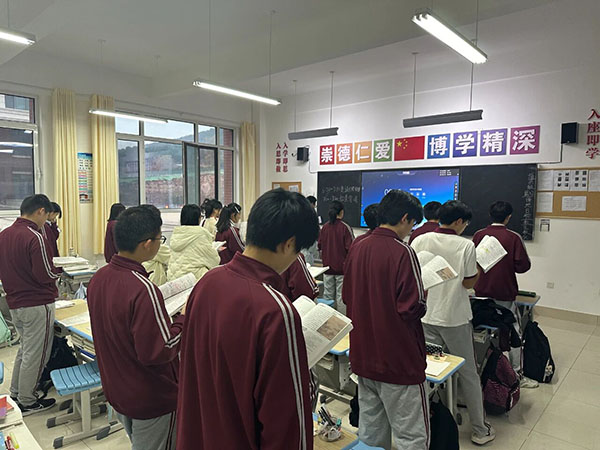 晨光微露,书声琅琅。早读课上,全体同学统一采用“站立早读”形式,挺拔身姿,精神振奋。大家手持书本,全情投入,或高声诵读,或专注记忆,声音洪亮、气势如虹。这不仅有效提升了记忆效率,更展现了高一学子朝气蓬勃、积极进取的精神风貌。朗朗书声回荡在教学楼间,成为校园清晨最动人的风景线。