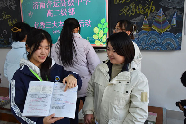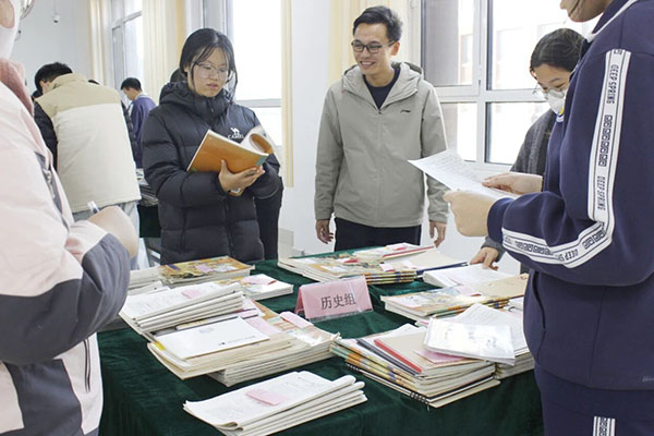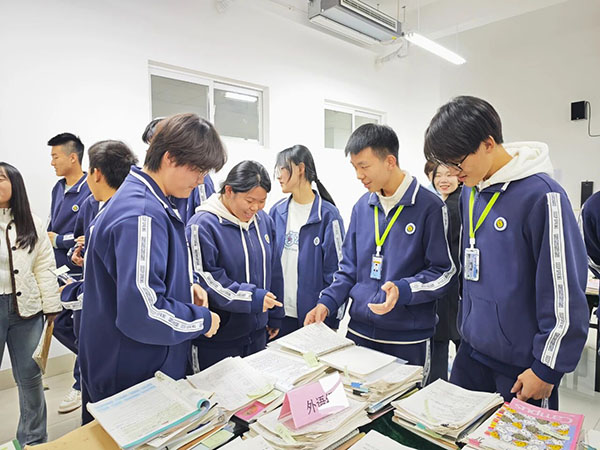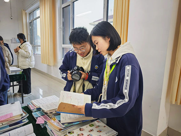 学校领导、全体高二师生、部分高一师生进行参观,备课组长与优秀学生代表分学科进行讲解展示。老师们引导学生学习优秀学习方法,鼓励大家结合自身特点优化 “三大本” 使用方式,让学习更具针对性。