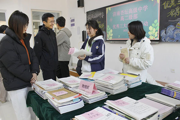 “三大本”是级部教学活动的重要组成部分,是伴随学生成长的学习工具。为营造优良学风,深化教学工作精细化管理,高二级部精心组织的优秀“三大本”展示活动在教学楼大厅顺利举办,学校领导、全体高二师生、部分高一师生参加了本次活动。