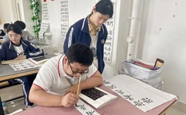 在书法教室里,学生们挥毫泼墨,临摹经典碑帖,练习各种书体的笔法和结构,力求在艺考中绽放光彩。