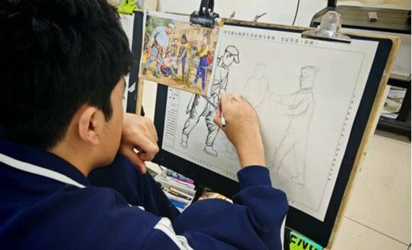 这里是美术学生们追梦的地方,墙上张贴着优秀作品,无声地激励着每一位同学。