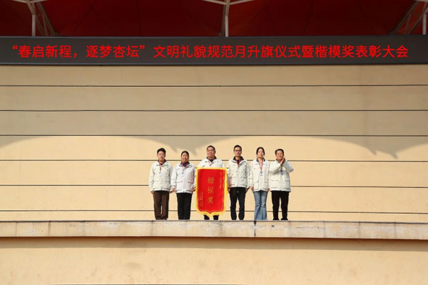 时序更迭,福启新章。晨光洒满杏坛校园,新学期的征程正式启航。为厚植文明素养、凝聚奋进力量,我校举行“春启新程,逐梦杏坛”文明礼貌规范月升旗仪式暨楷模奖表彰大会。