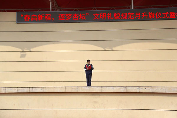 文明润心,逐梦致远。新学期的号角已经吹响,未来的画卷正待铺展。我校始终坚守“美其各美,做最好的自己”的核心育人理念,坚持以美润心、以导育人、因材施教,尊重每一位学子的成长规律与个性特质,用心发现、耐心引导、全力赋能,让每一位同学都能在适合自己的赛道上向阳生长、绽放光彩。愿全体杏坛师生以信念为帆,以团结为桨,以笃行为舵,将文明礼貌践行于日常,以昂扬姿态全力以赴,在青春的赛道上勇毅前行,共同书写杏坛校园更加灿烂的新篇章!